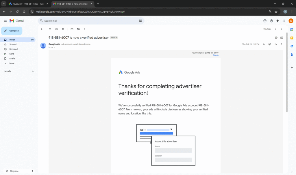 Google Advertiser Verification π Start Verification Now Google Advertiser Verification Google Advertiser Verification Get Verified on Google & Run Ads Without Worries Fast & Trusted Google Advertiser Verification Services Stay Compliant, Avoid Suspension β Verification Made Easy Hassle-Free Verification Support for Advertisers & Businesses Overview Section of Our Clients Get Verified on Google (Live Proof) Get Verified on Google & Run Ads Without Worries. 1οΈβ£ π Then Now β 2οΈβ£ π Then Now β 3οΈβ£ π Then Now β 4οΈβ£ π Then Now β 5οΈβ£ π Then Now β